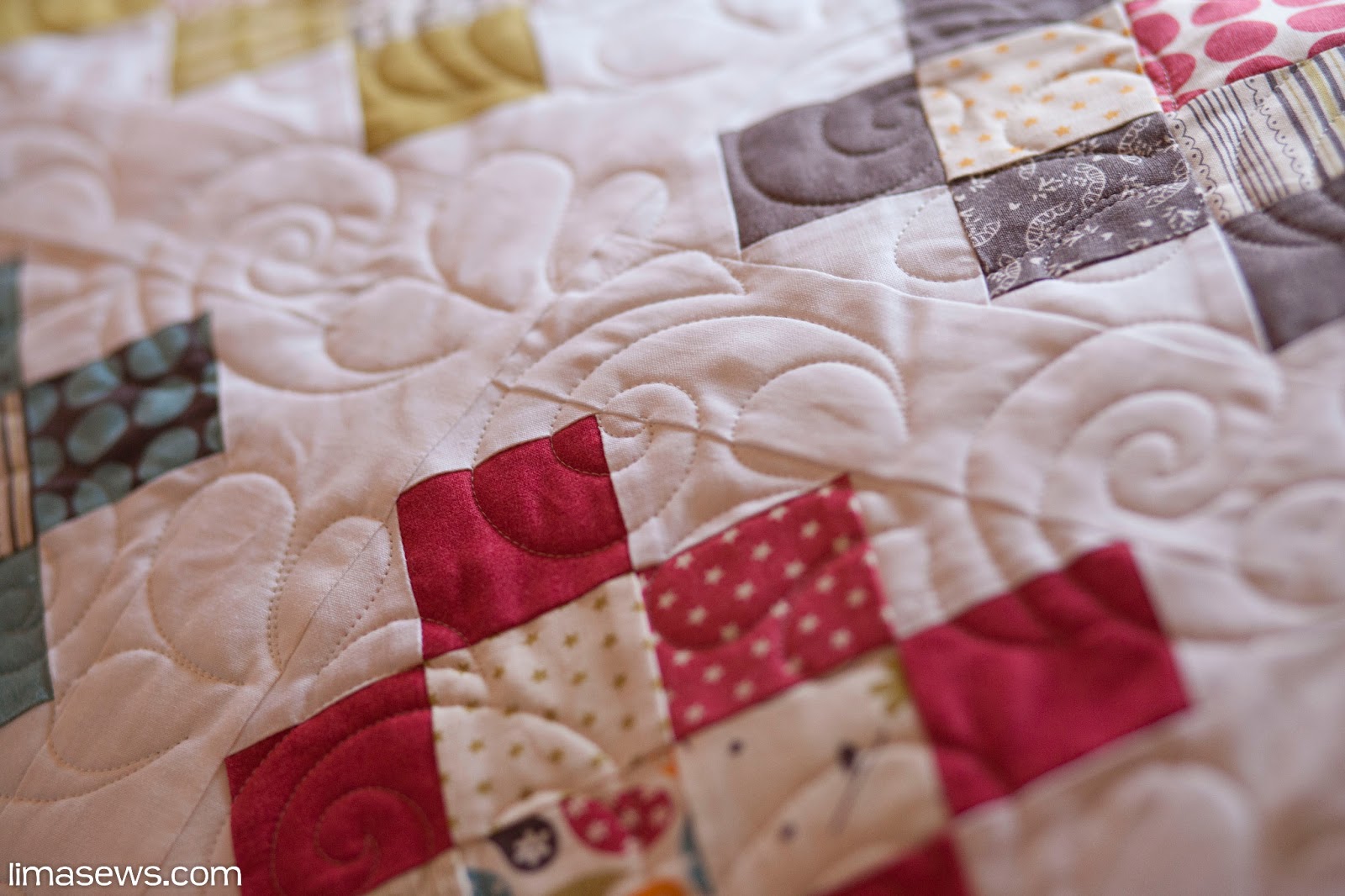 Jennifer chose a stars-and-loop pattern for the quilting, which was perfect. It didn't overpower the quilt but instead blended into the background nicely, so the focus stayed on the piecing.